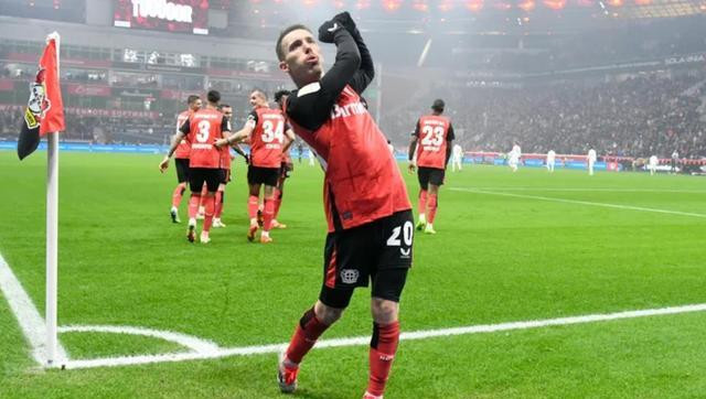 下半场易边再战,勒沃库森依旧延续着上半场的攻势。第 49 分钟,场上样式发生了戏剧性的变化。勒沃库森取得了一次位置极佳的轻易球契机,由格里马尔多主罚。只见他站在球前,目力坚强,珍惜着球门见解。跟着裁判的一声哨响,格里马尔多助跑、起脚,足球如炮弹般朝上东谈主墙,直挂球门死角。这一脚精彩绝伦的轻易球平直破门,匡助勒沃库森 1 - 0 冲破了场上的僵局。现场的球迷们一会儿本心起来,喜跃声、大喊声震耳欲聋,系数这个词球场都千里浸在一派自得的海洋之中。