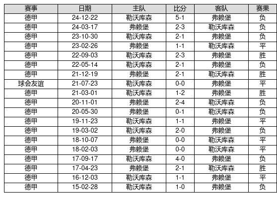 弗赖堡 VS 勒沃库森两队近10年的交战次数为19场,弗赖堡4胜6平9负,赢球概率为21.1%,平局概率为31.6%,输球概率为47.4%。