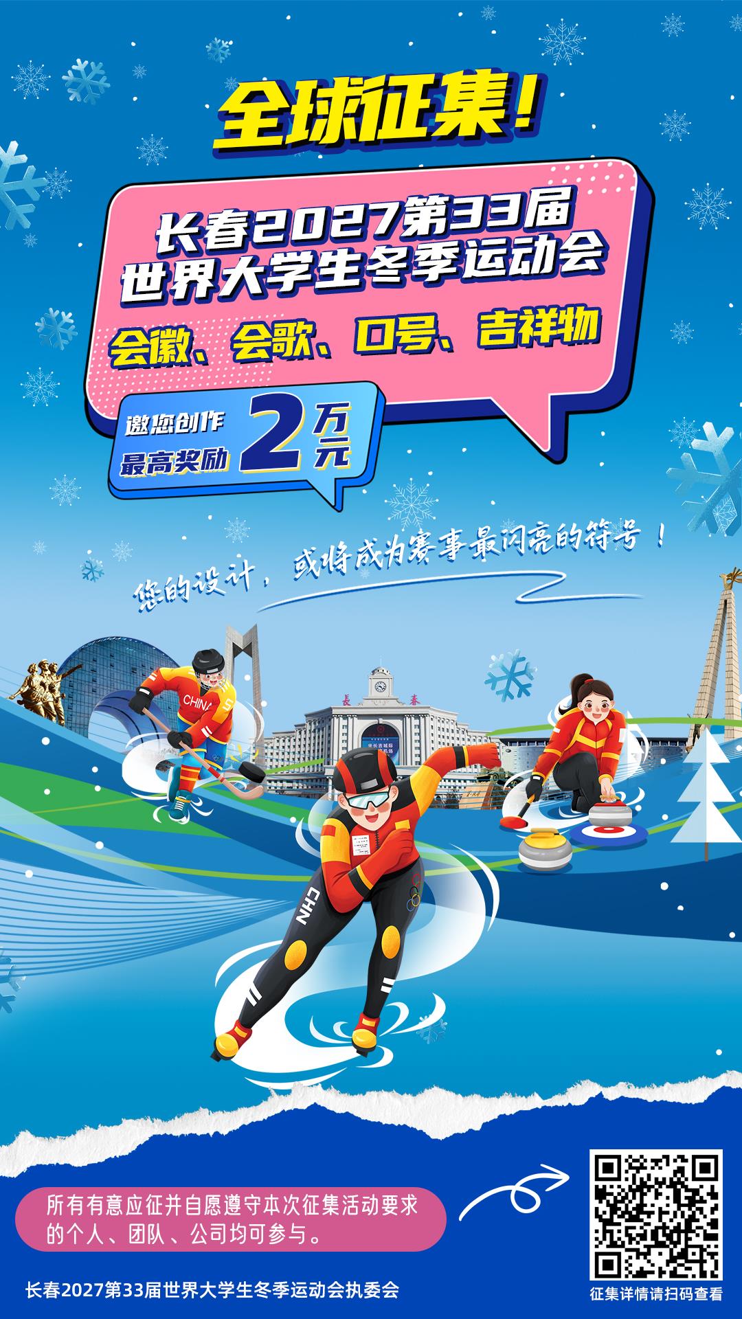 长春2027第33届寰宇大学生冬季领路会从11月28日起面向寰球公开征贴近徽、会歌、标语和祥瑞物。