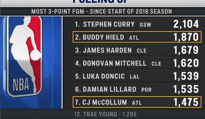 > 前10老鹰有两个!18赛季以来三分掷中榜 库里&哈登&东契奇前五体育集锦