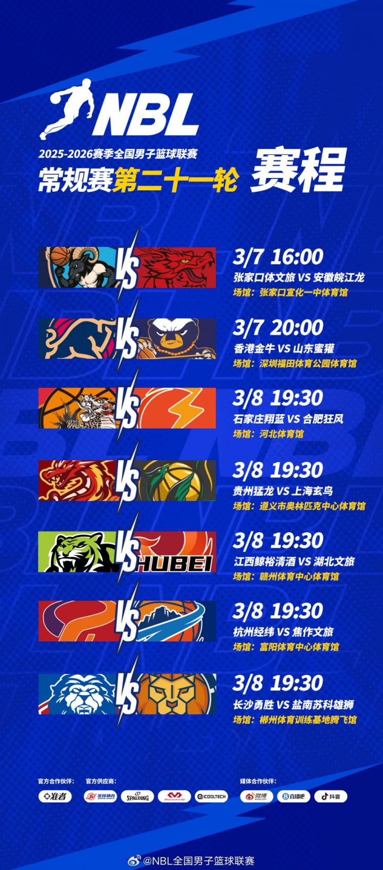 【赛程】NBL惯例赛第二十一轮将于3月7日-3月8日进行!体育集锦