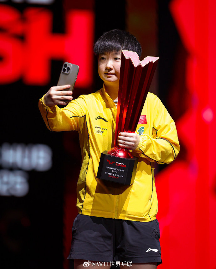 新加坡大满贯女单决赛,宇宙名顺序1的孙颖莎以4-1投降宇宙名顺序15位的国乒队友蒯曼,获取冠军。